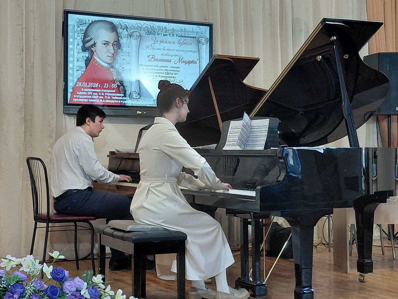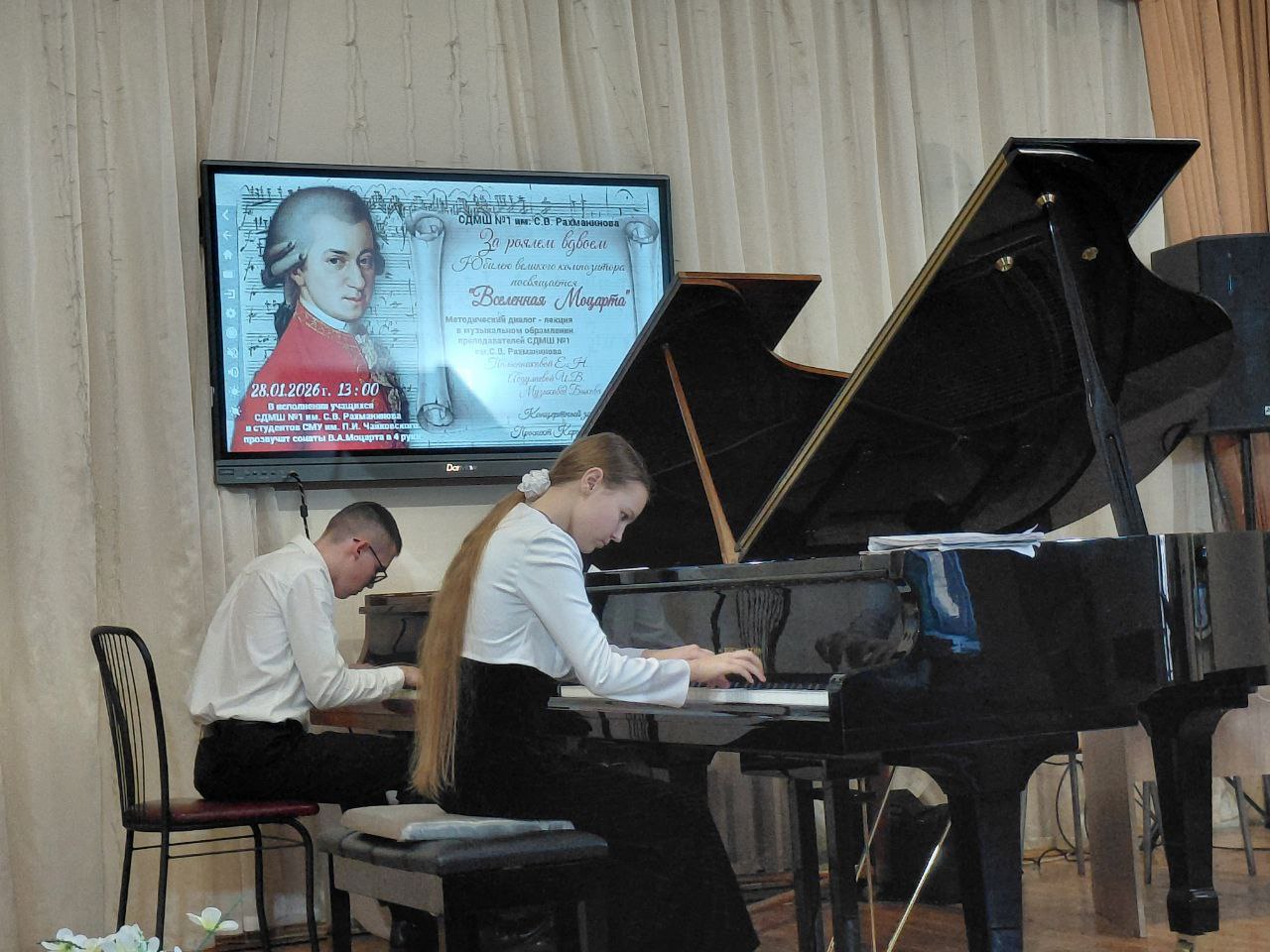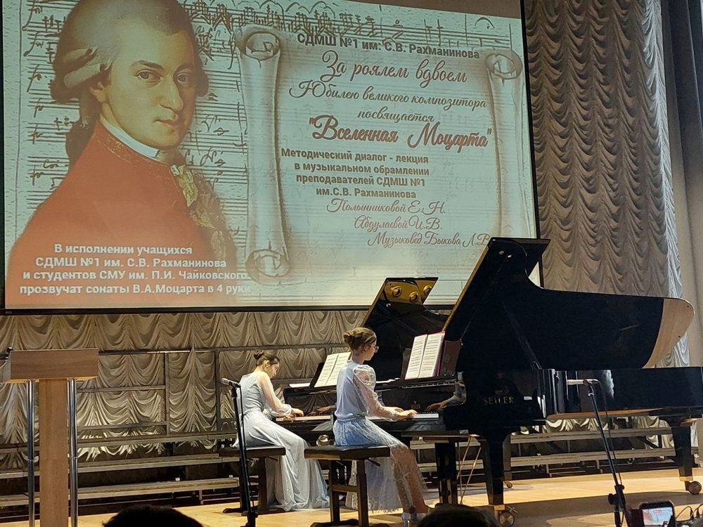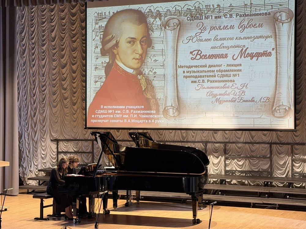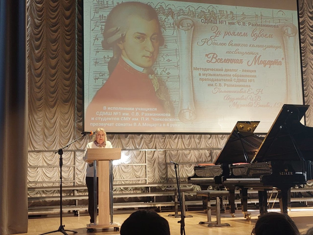 Представленный диалог-лекция "Вселенная Моцарта" на Межрегиональном методическом семинаре, проходившем 19-20 февраля 2026 года в ГБОУДО ГС "СДМШ N.1 им.Н.А.Римского-Корсакова", стал ярким событием семинара, направлением которого в этом году было "Значение творчества венских классиков в педагогической и концертмейстерской практике". Высокопрофессиональная работа преподавателей и прекрасное исполнение 4-ручных сонат Моцарта продемонстрировало стилевые особенности музыки композитора и эпохи, в которой творили венские классики. Также признательности и высокой оценки заслуживает выступление Елены Картелишевой, украсившее концерт на Торжественном открытии семинара.